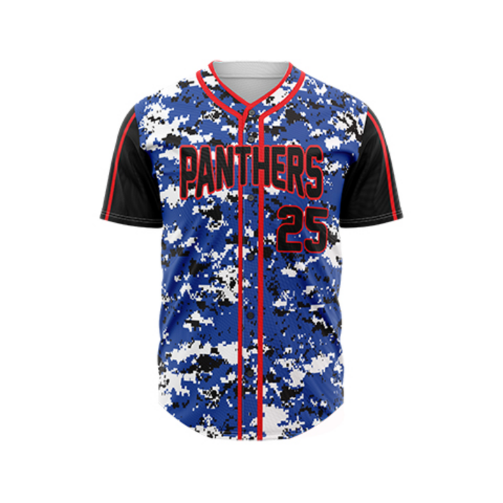 OEM Service Custom Full Sublimated Design Baseball Uniform V-Neck Full Button Stripe Jersey 100%Polyester Moisture Wicking Fiber