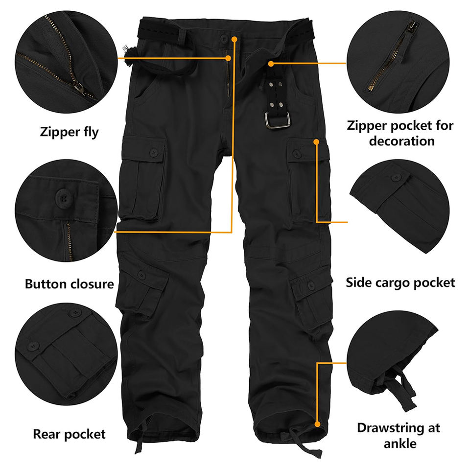OEM Service Men's Casual Cargo Pants Black Color Quick Dry Cotton Polyester Mid Waist Lightweight for Outdoor Activities
