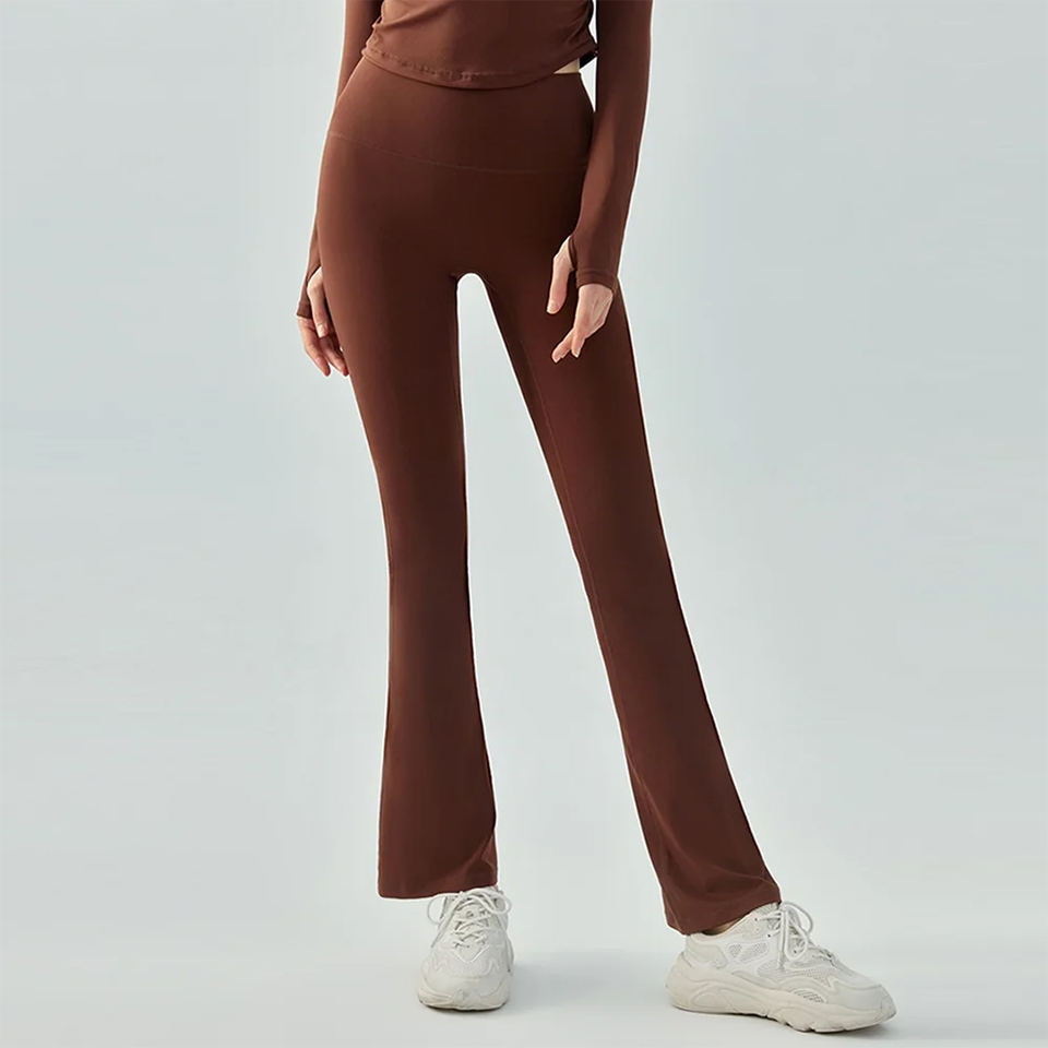 OEM Service Plus Size High Breathable Activewear Gym Fitness Flared Legging Dark Brown Color Women 2 Piece Workout Sports