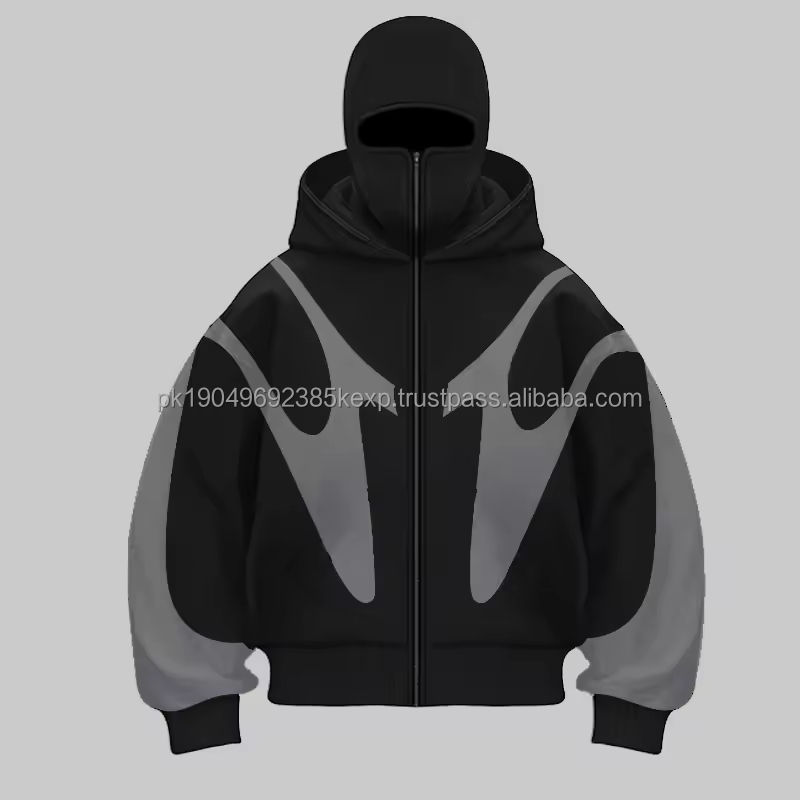 OEM Service Printed Pullover Hoodi with Distressed Design White Balaclava Black Color New Cartoon Logo Loose Fit Hooded Collar