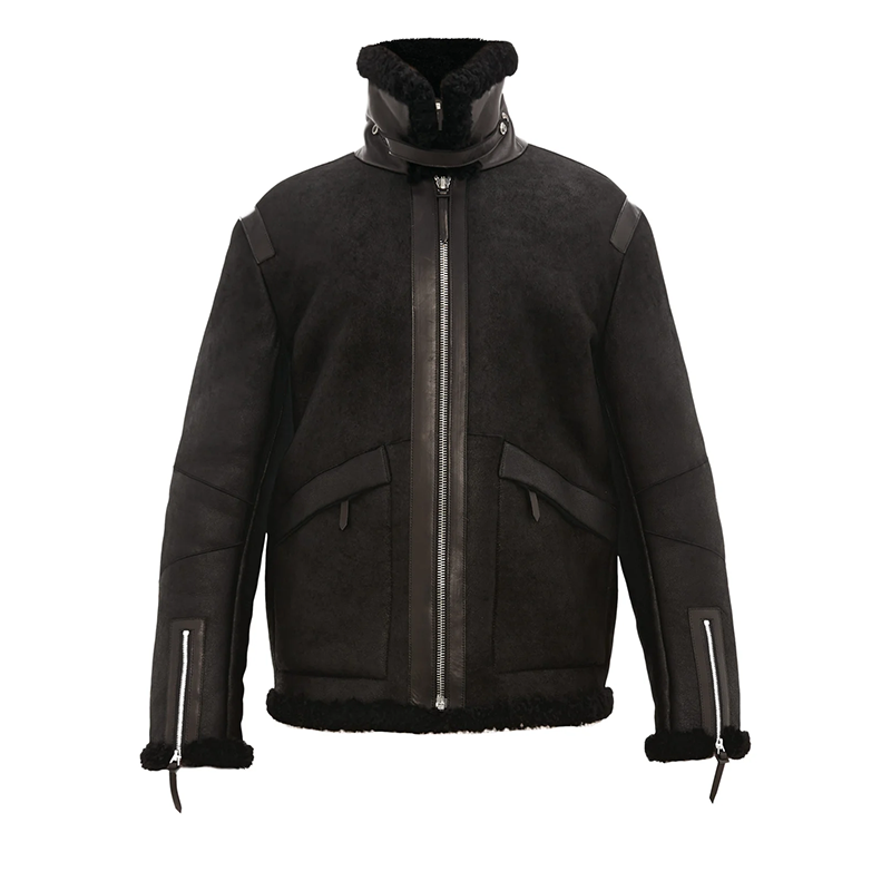 OEM Services High Quality Custom Logo Front Men Leather Fur Jacket Eco-Friendly Wool Lining Winter Jacket Made in Pakistan