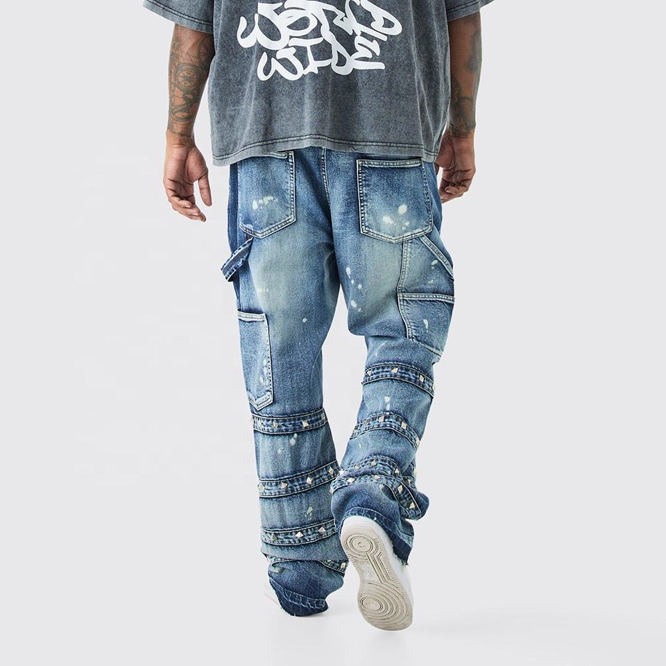 OEM Services Private Latest Fashion Design Vintage Pants Flared Stacked Pants Paint Denim Men Jeans