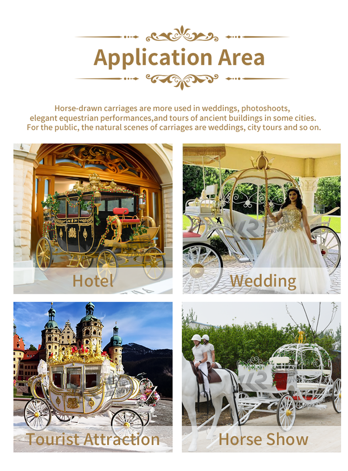 OEM Special Transportation Wedding Electric Horse Drawn Carriage Golden Color Royal Sculpture Horse Carriage