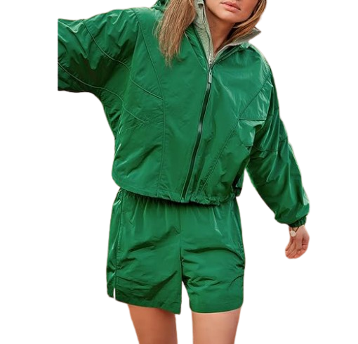 OEM Sportswear Half Zip Pullover Tracksuit Jogging Crop Top Windbreaker Jacket Two Piece Pants Set Women
