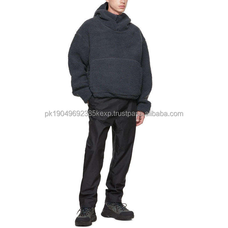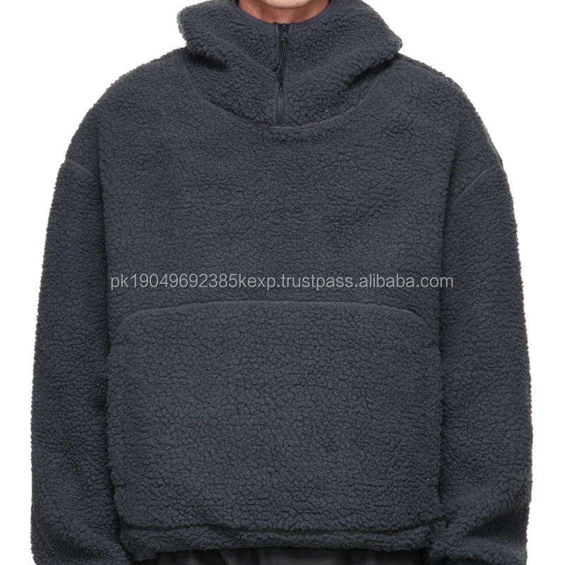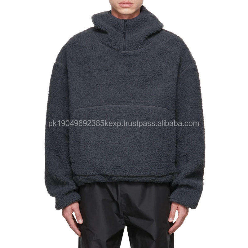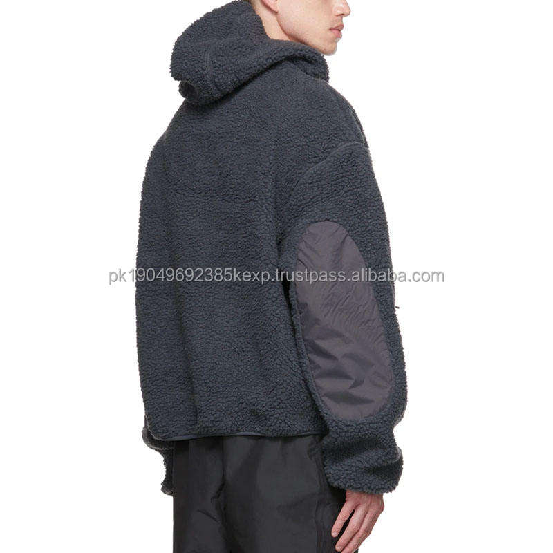 OEM Street Wear Zipper Sherpa Fleece Hoodie Custom Men Long Sleeve Elbow Patch Front Pocket Polar Fleece Hoodie