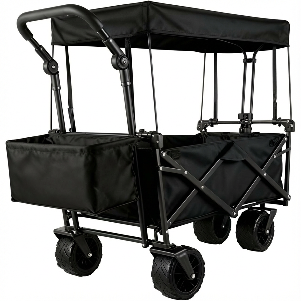 OEM Support 4-Wheel Steel Portable Outdoor Camping Folding Beach Wagon Cart for Kids with Removable Canopy and Tools