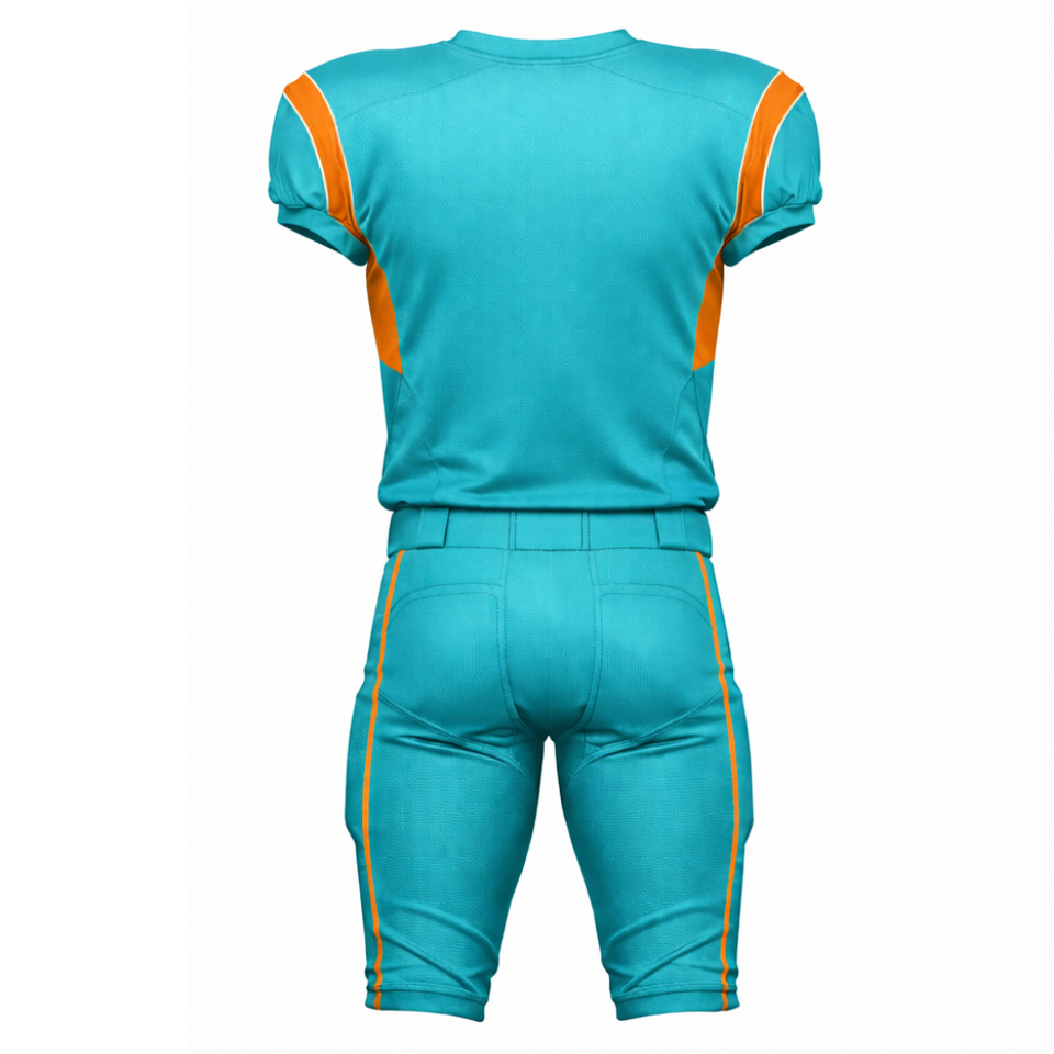 OEM Turquoise & Orange American Football Uniform Contrast Shoulder Panel Performance Jersey with Padded Pant