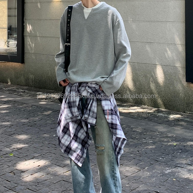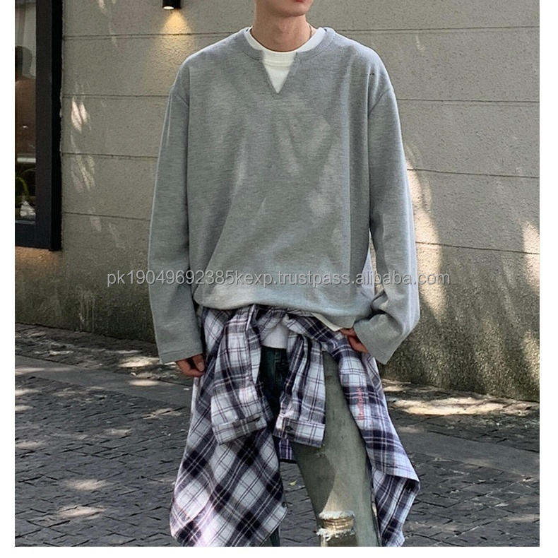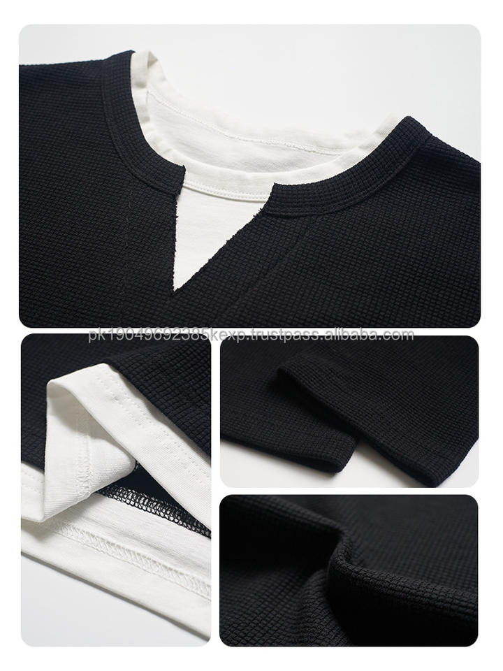 OEM Unisex Waffle Pullover T Shirt Double Layer Long Sleeve Hoodie Custom Men High Quality Blank Plain T Shirt