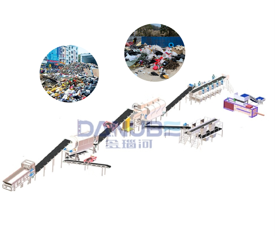 Technology:trommel screen,air separator,waste shredder,magnetic separator.etc