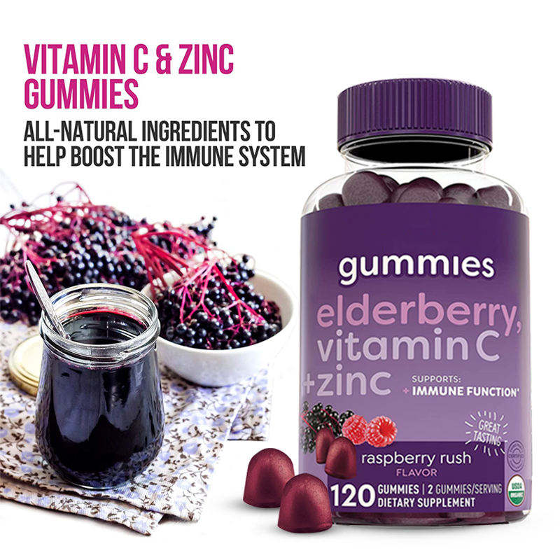 OEM Vegan 3-in-1 Immune Support Supplement Premium Organic Sambucus Elderberry Gummies with Vitamin C Zinc for Adults Children