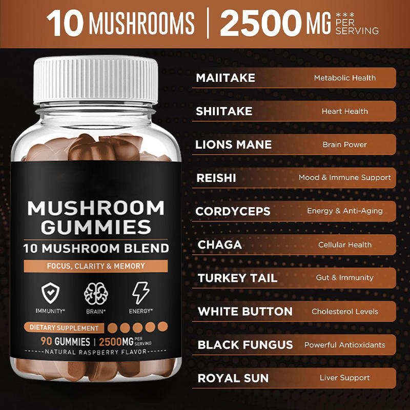 OEM Vegan Gummy Candy Nootropic Brain Supplement with Mushroom Complex for Hair Growth Memory Sleep Support for Adults (Unisex)