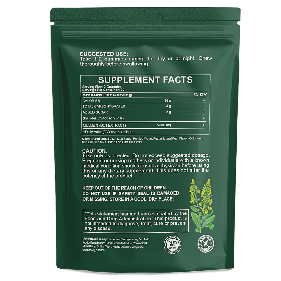 OEM Vegan Mullein Supplement Gummies Provide Energy Mullein Leaf Lung Detox Gummies