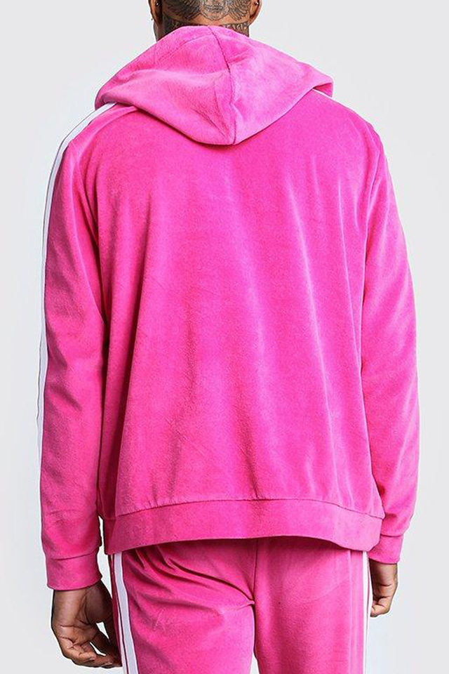 OEM Velour Tracksuit Plain Velvet Zipper Hoodies Trouser Sweatsuit Custom 100% Polyester Velour Stripe Line Tracksuit Men's