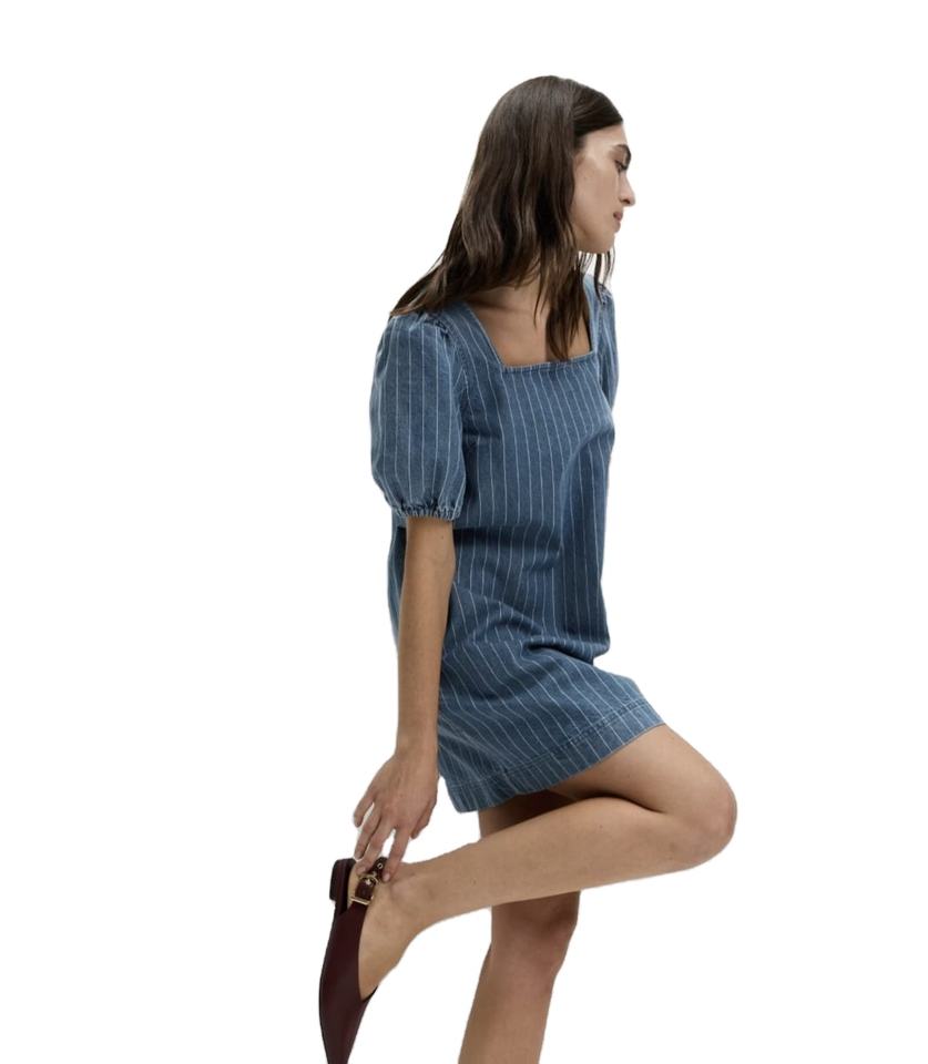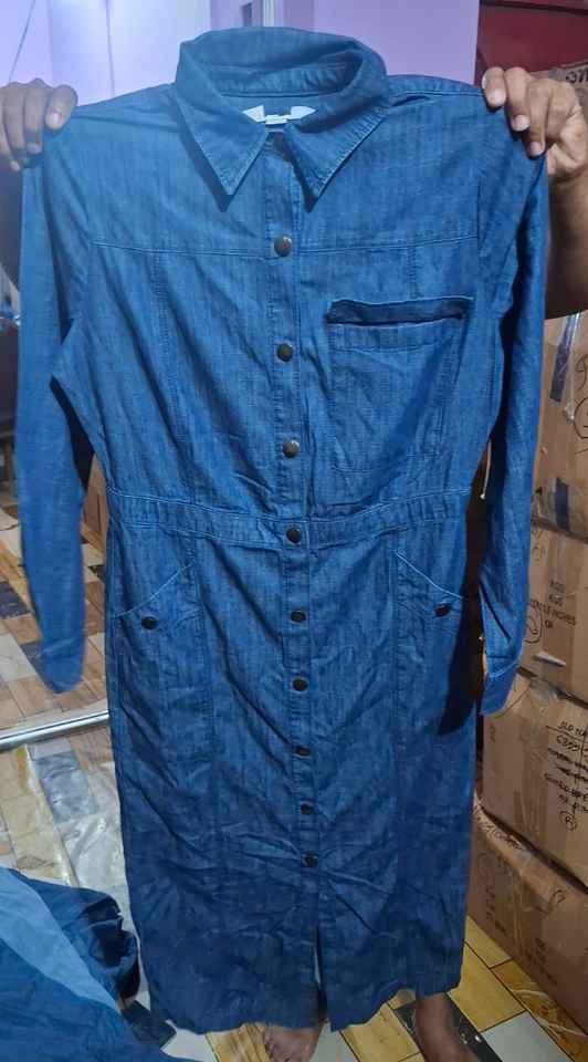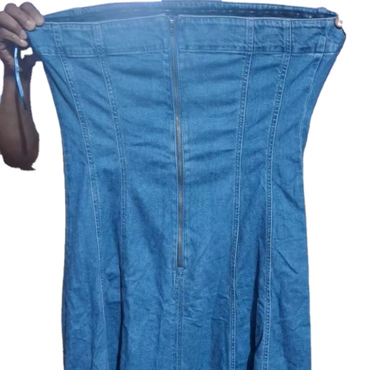 OEM Vintage Bleach Wash Denim Shirtdress for Women Floor-Length with Patch Pockets Short Sleeves Plain Dyed Woven Technique
