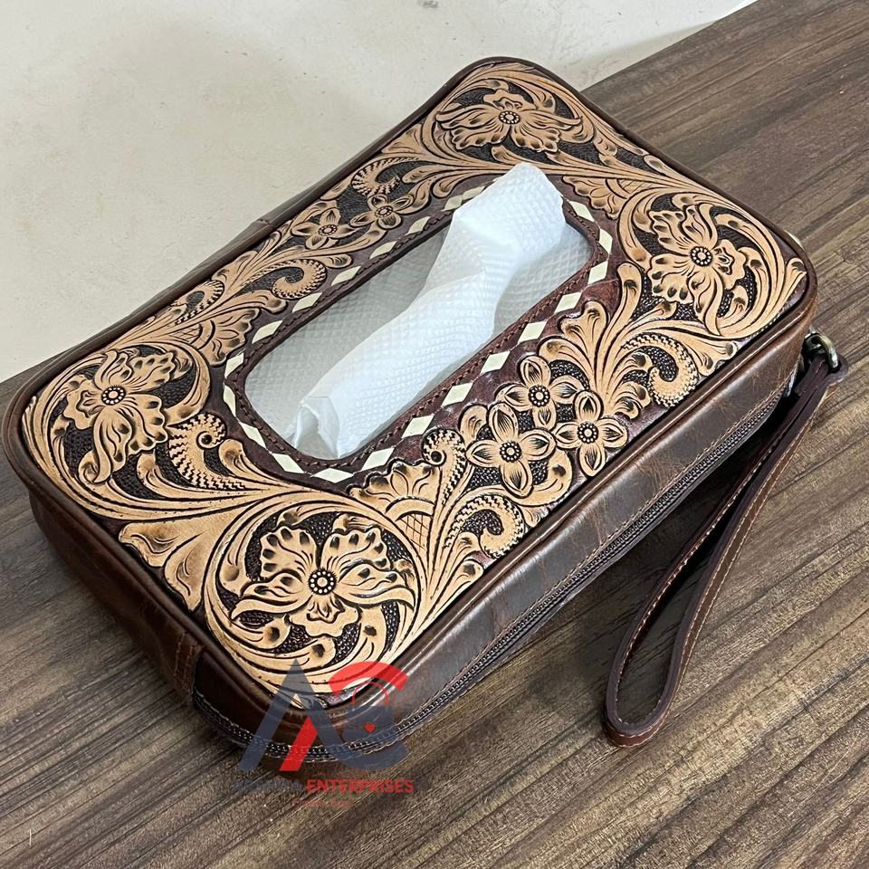 Product name:Hand Tooled Leather Tissue & Wet Wipe Dispenser Cover