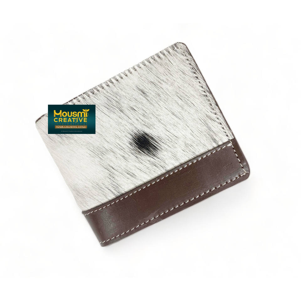 Acid Wash Hair on, Hand Tolled Leather, Western Style, Bi- Fold Type
