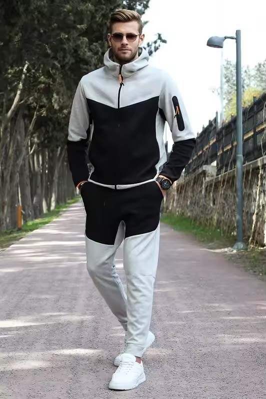 OEM Wholesale 100% Cotton Gym Tracksuit for Men Black Jogger Suits Beaded Techniques Pakistani Manufactured for Autumn Winter
