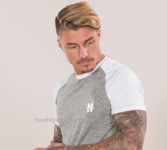 OEM Wholesale 95% Cotton 5% Elastane Men's Slim Fit Tee Shirt Longer Drop Curved Hem Round Neck Muscle Fitness Mens Gym T-shirts