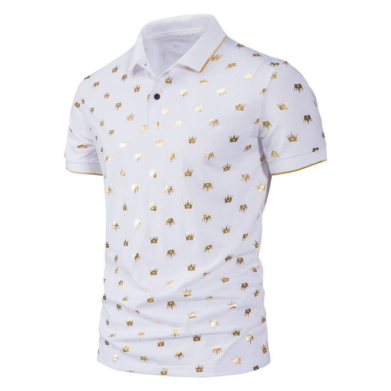 OEM Wholesale Classic Gold Crown Print Golf for Polo Shirts Custom Design Short-Sleeve Cotton for Polo T-Shirt for Men Solid Pat