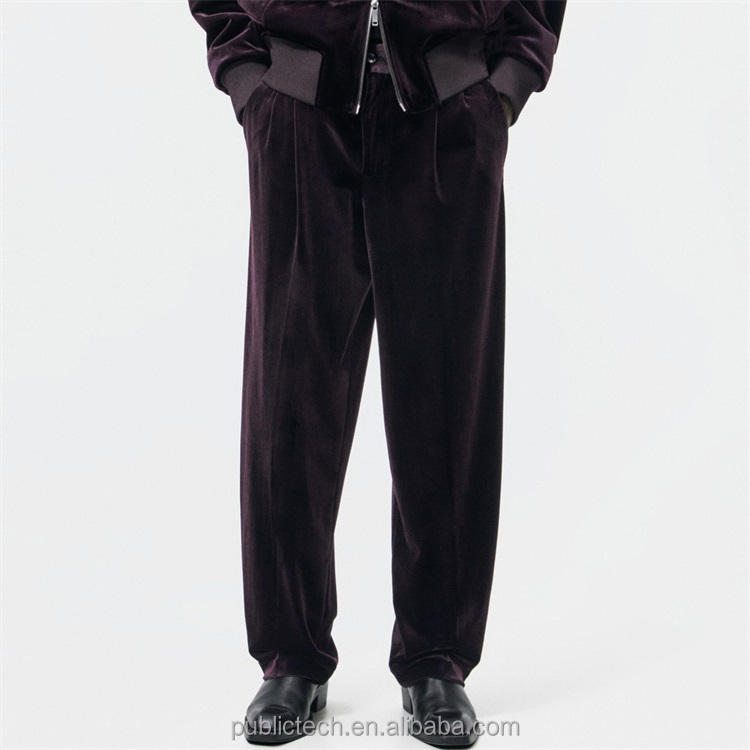 OEM Wholesale Custom 93% Polyester 7% Elastane Custom Logo Blank Wide Fit Velvet Trousers for Men