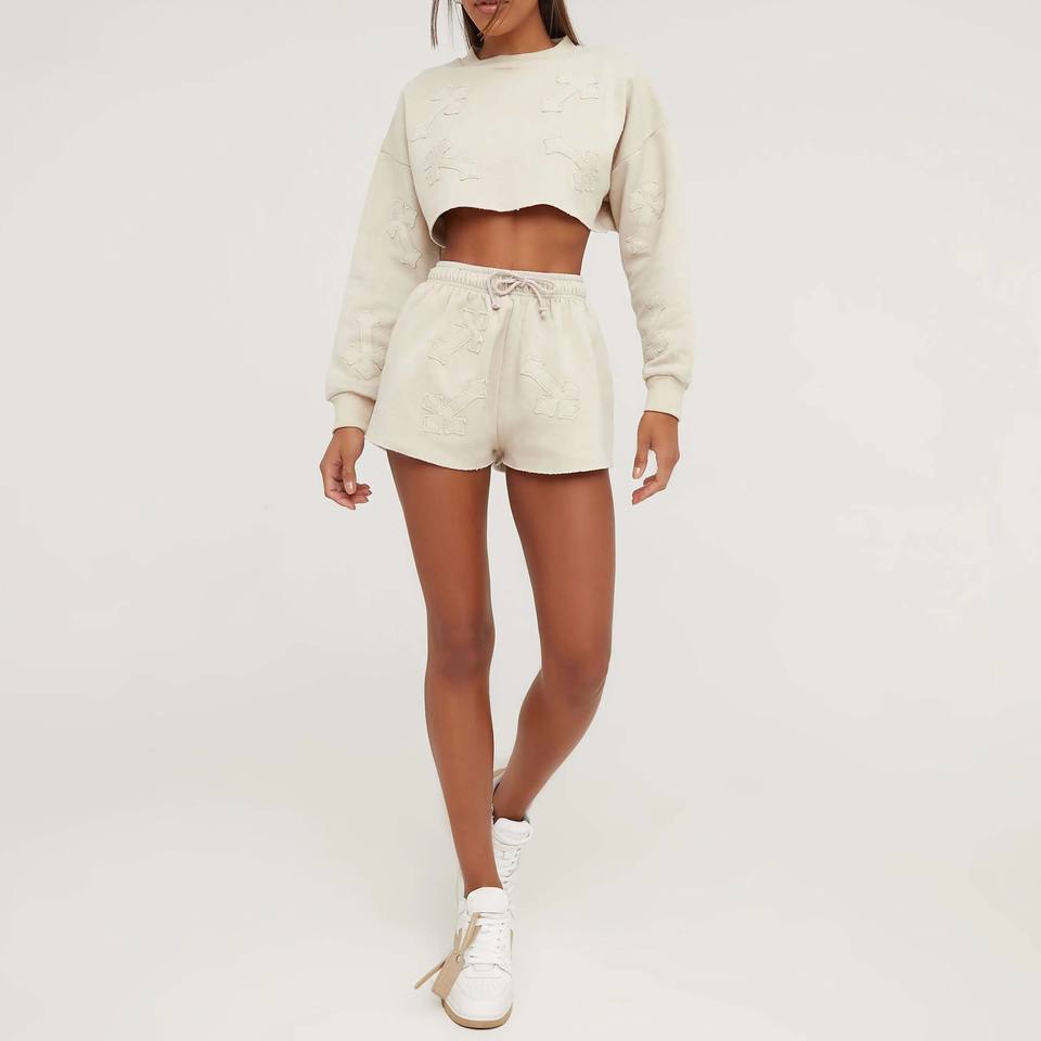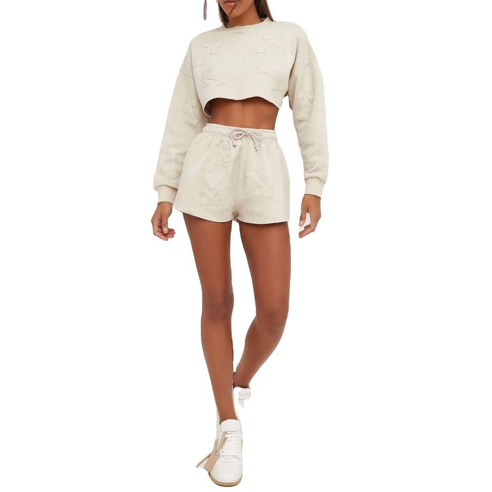OEM Wholesale Custom Logo 100% Cotton Women's Outfits Joggers Shorts Set Two Piece Tank Top Pants Crop Top for Winter Girls