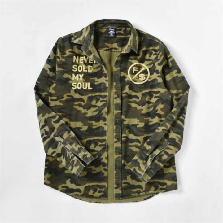 OEM Wholesale Custom Logo Cotton Washed Lightweight Camo Men's Shirt Twill Jacket