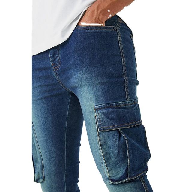 OEM Wholesale Custom Slim Fit Fashionable Multi Pockets Comfortable Pants Denim Material Men's Jeans For Sale