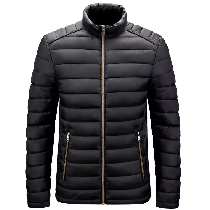 OEM Wholesale Lightweight Canvas Men's Jacket Autumn Winter Fashion Hooded Bubble Puff Coat Packable Outdoor Puffer Front Logo