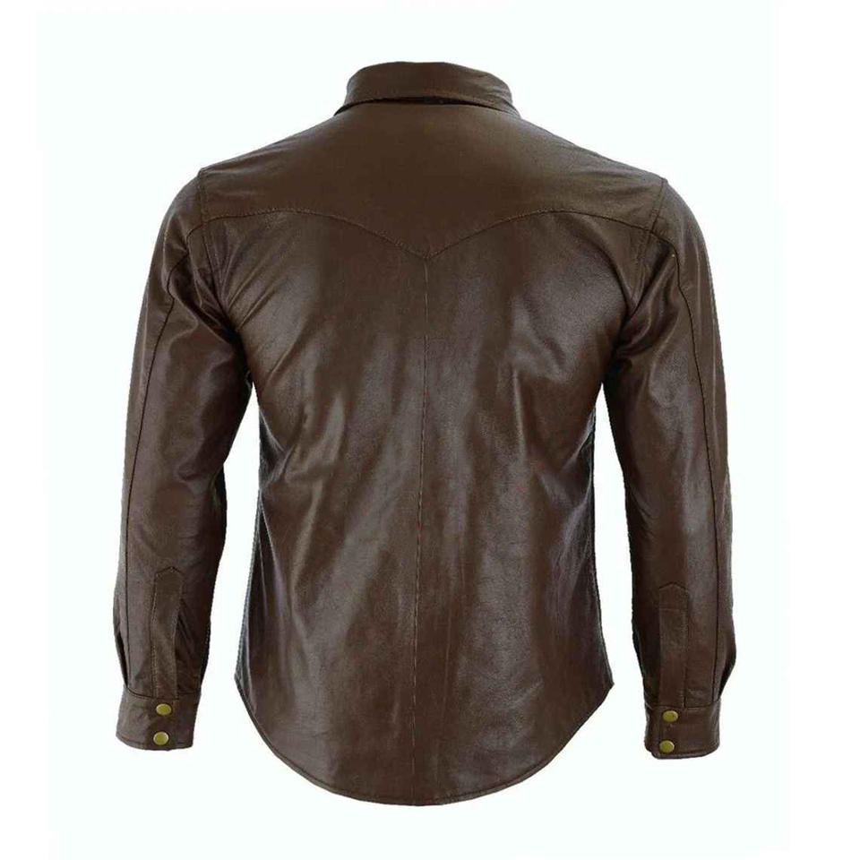 OEM Wholesale Long Sleeve Genuine Leather Men Brown Classic Style Long Sleeves Shirt Customized Design.