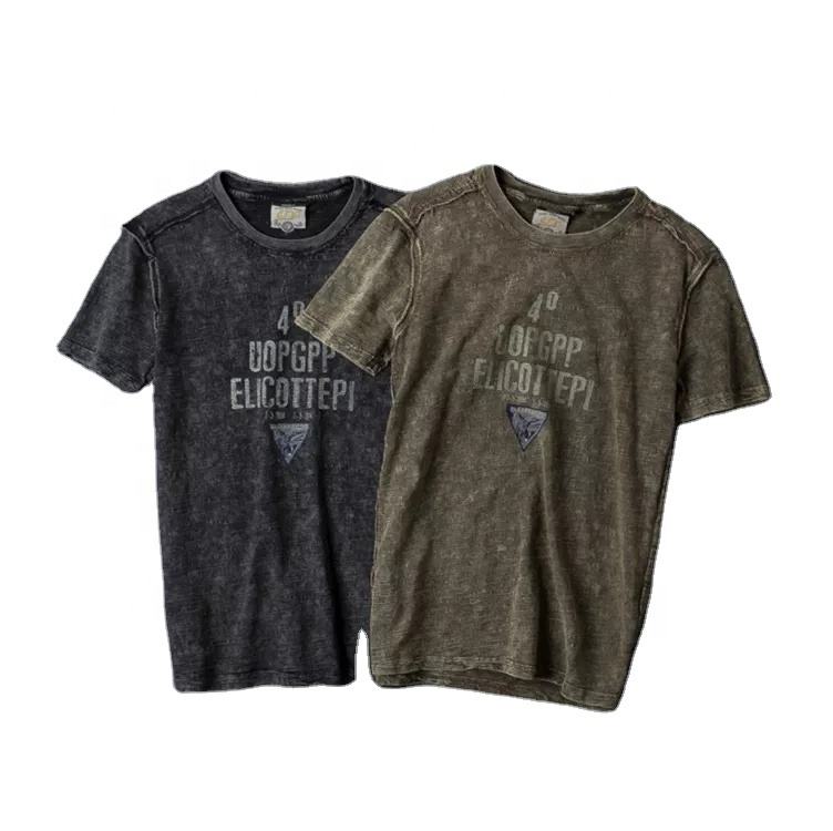 OEM Wholesale Men's Vintage Wash Cotton Flannel T-Shirt Short Sleeves Custom Logo Print Floral Pattern Breathable Winter Wear