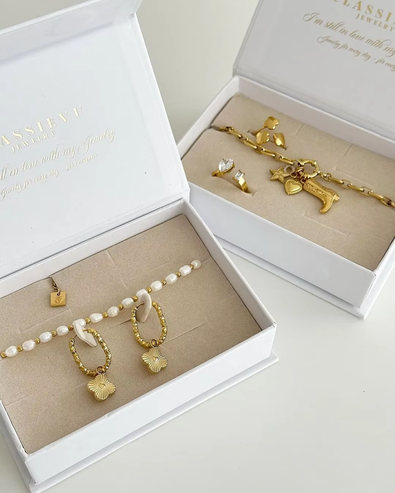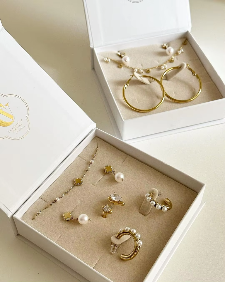 OEM Wholesale Price Velvet Jewelry Box Set White Packaging for Necklaces Rings