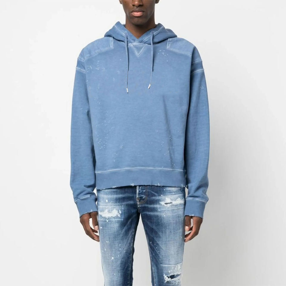 OEM Wholesale Unisex Custom Made Acid Washed Cropped Hoodie High Quality Vintage Distressed Loose Fit Embroidered Winter