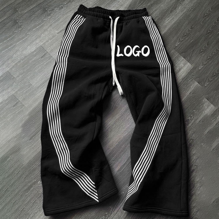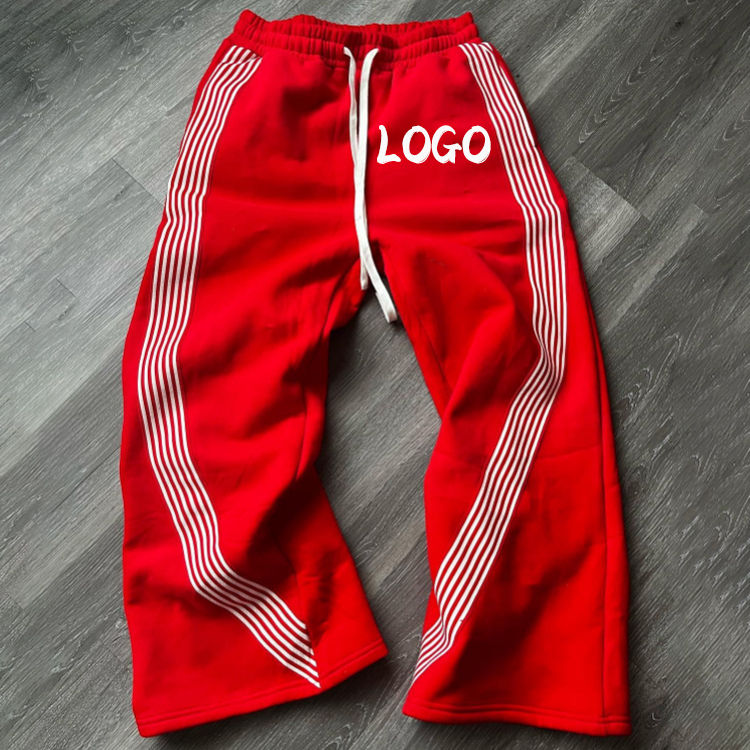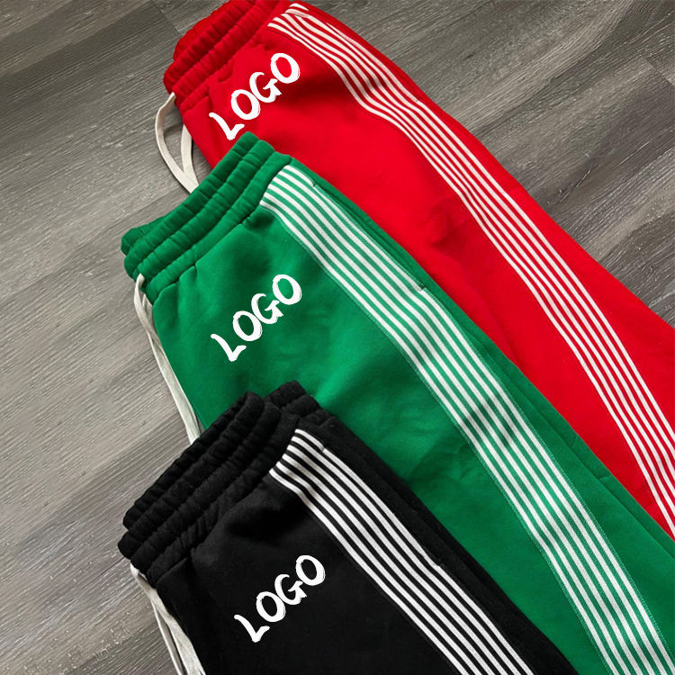 OEM Wholesale Unisex Fashion High Quality Streetwear Cotton French Terry Flare Sweat Side Stripe Pants For Men's