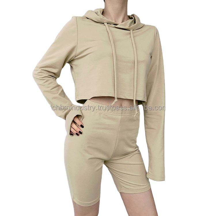 OEM Wholesale Women Sports 2 Pieces Crop Top Hoodie Shorts Set two piece pants Women's Jogger Sweatsuit Sets