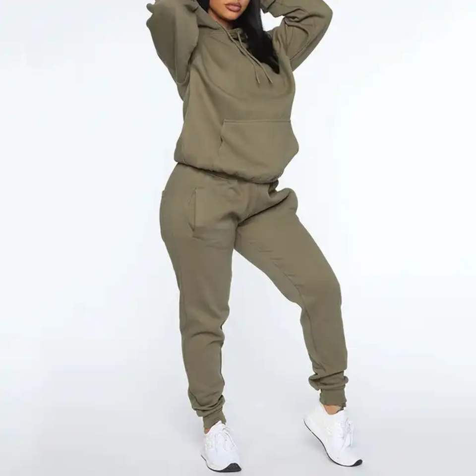 OEM Wholesale Women's Heavyweight Winter Tracksuit Hooded Crop Top and Workout Trouser 2-Piece Set for Running and Jogging