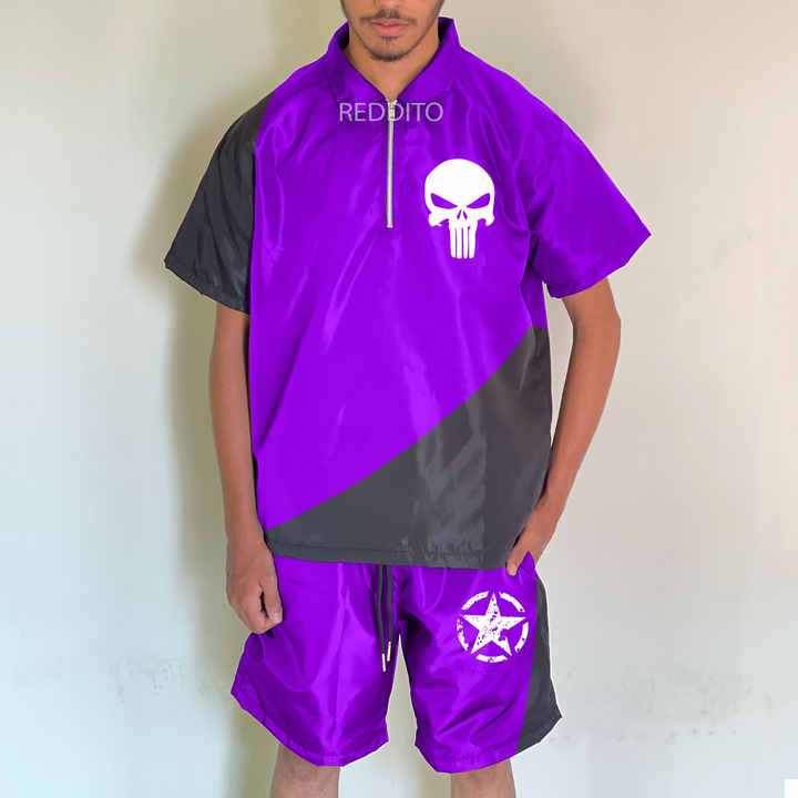 OEM Windbreaker Outdoor Running Shorts Sets Men 2025 Color Block Waterproof Nylon Half Polo Shirt Zip up Tracksuits for Boys