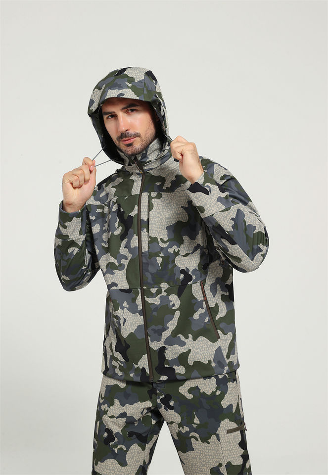 OEM Winter Outdoor Waterproof Nylon Lining Hunting Print Pattern Long Sleeve Warm Jacket for Men Custom Hunting Uniform