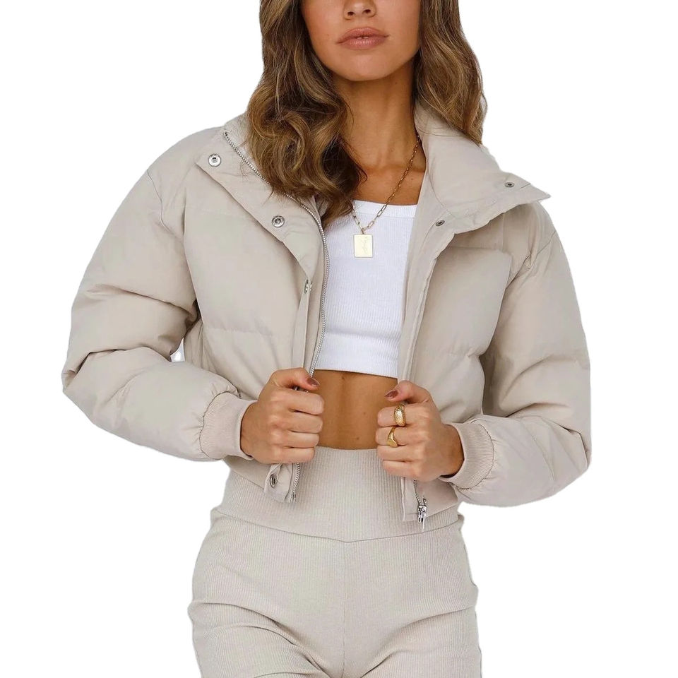 OEM Winter Streetwear High Quality Cropped Puffer Jacket Custom Print Pattern Windproof Puffer Jacket Women Warm Down Jacket
