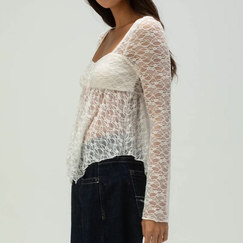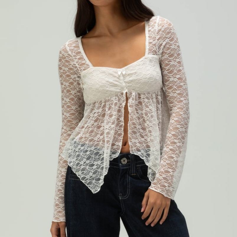 OEM Women White Sexy Corset Top Long Sleeve Shirt Mesh Lace Shirts Tops Crop Top for Women