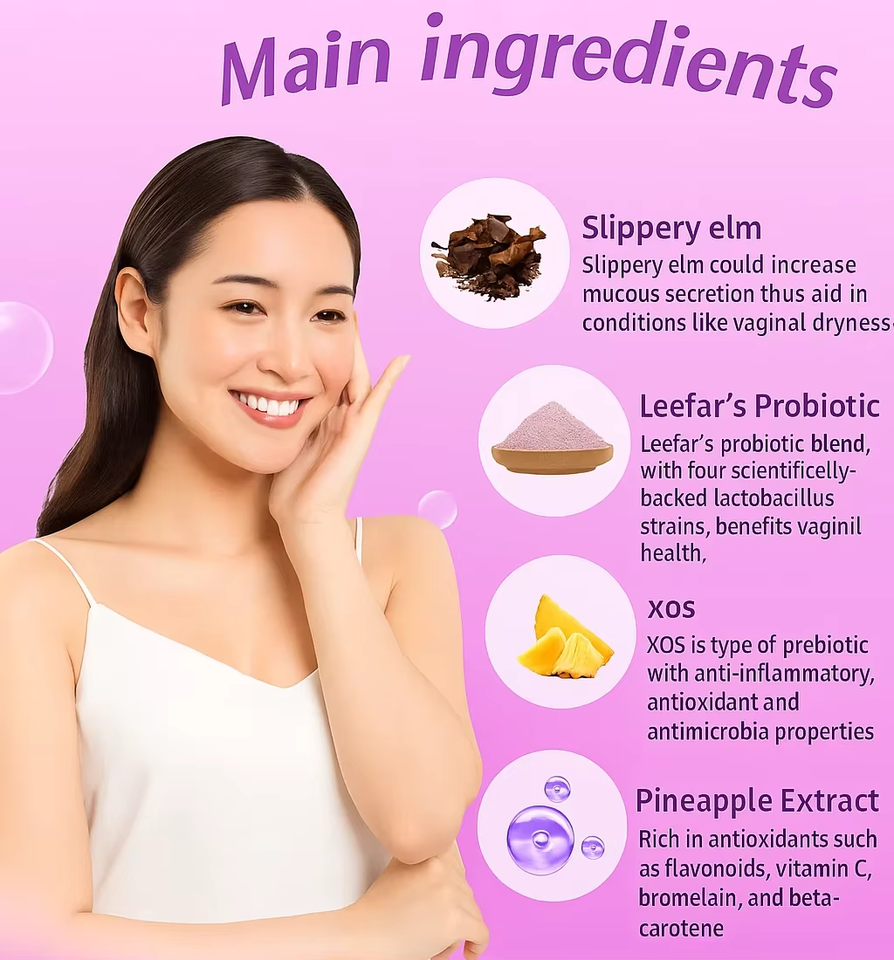 Main Ingredient:Probiotic Blend, Xylooligosaccharides, Ulmus Rubra