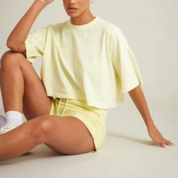 OEM Women's Shorts Set Plain Cotton Short Sleeve Tshirt Pants Fitness Running Sweat Shorts 2 Pieces Set Suit