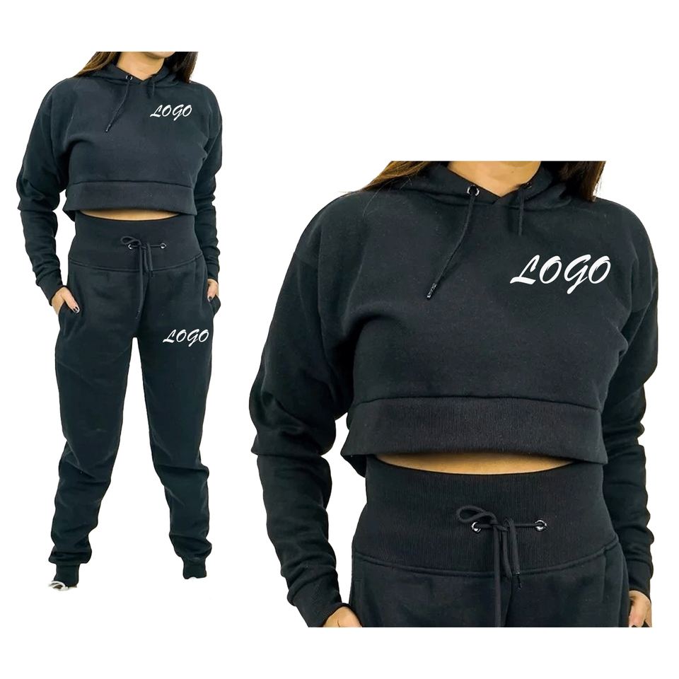 OEM Women's Slim Fit Crop Tracksuit 2-Piece Cotton Hoodie Joggers Set Custom Fitness Running Suit for Winter Training Workout