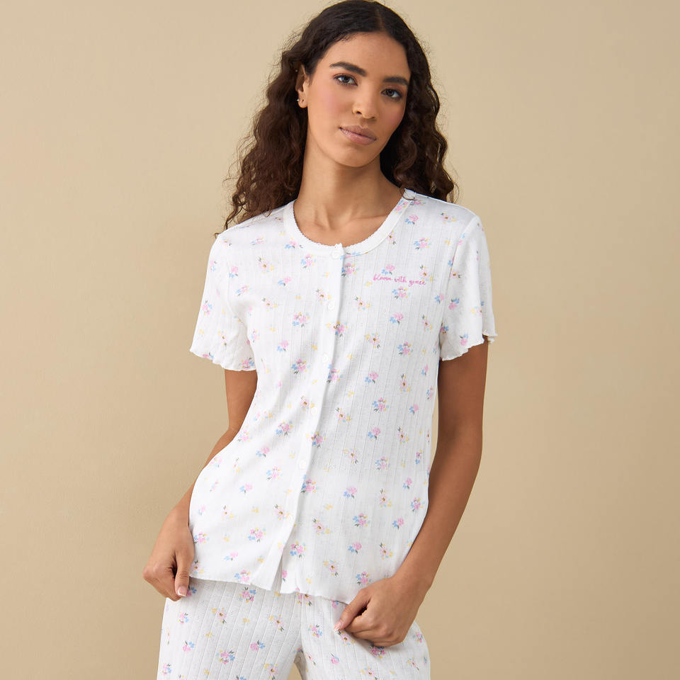 OEM Women's Summer Sleepwear Pajama Set Breathable 100% Cotton All-Over Vibrant Floral Prints Custom Logo Soft Elastic Knitted