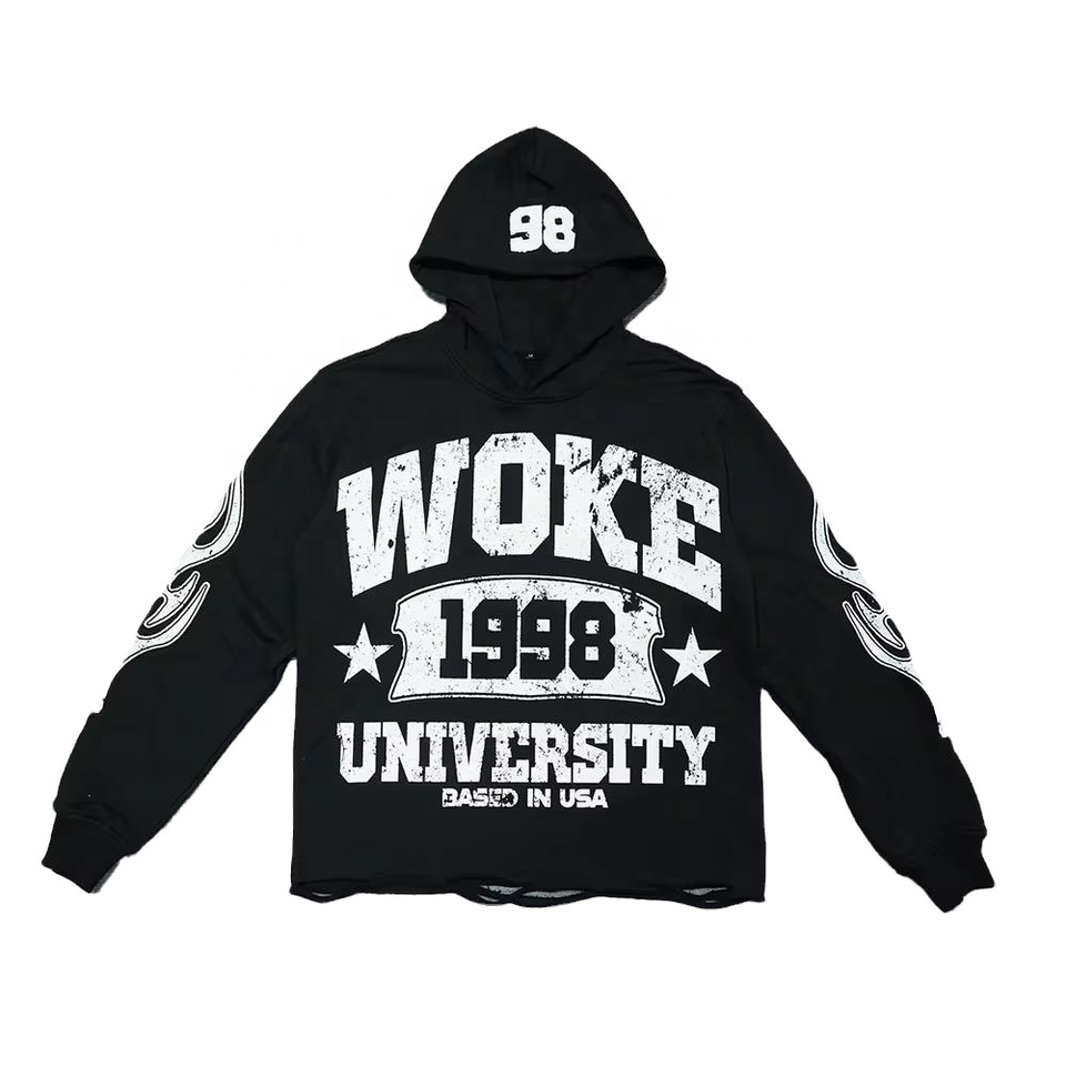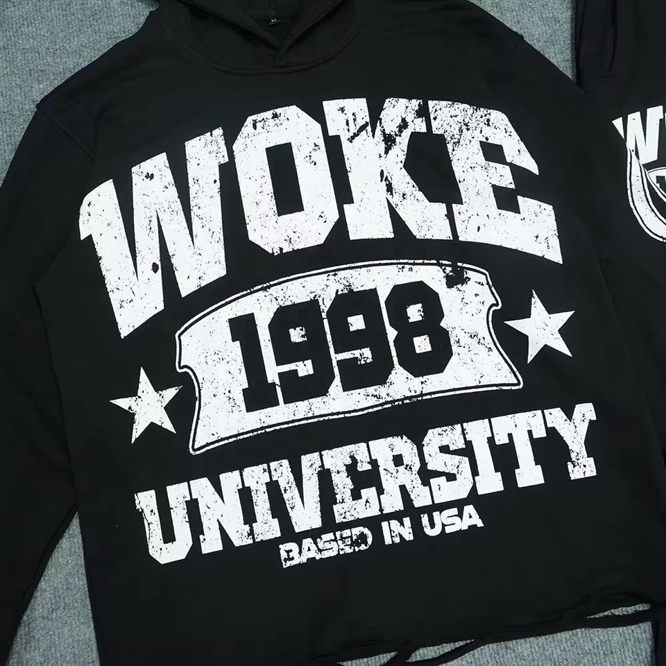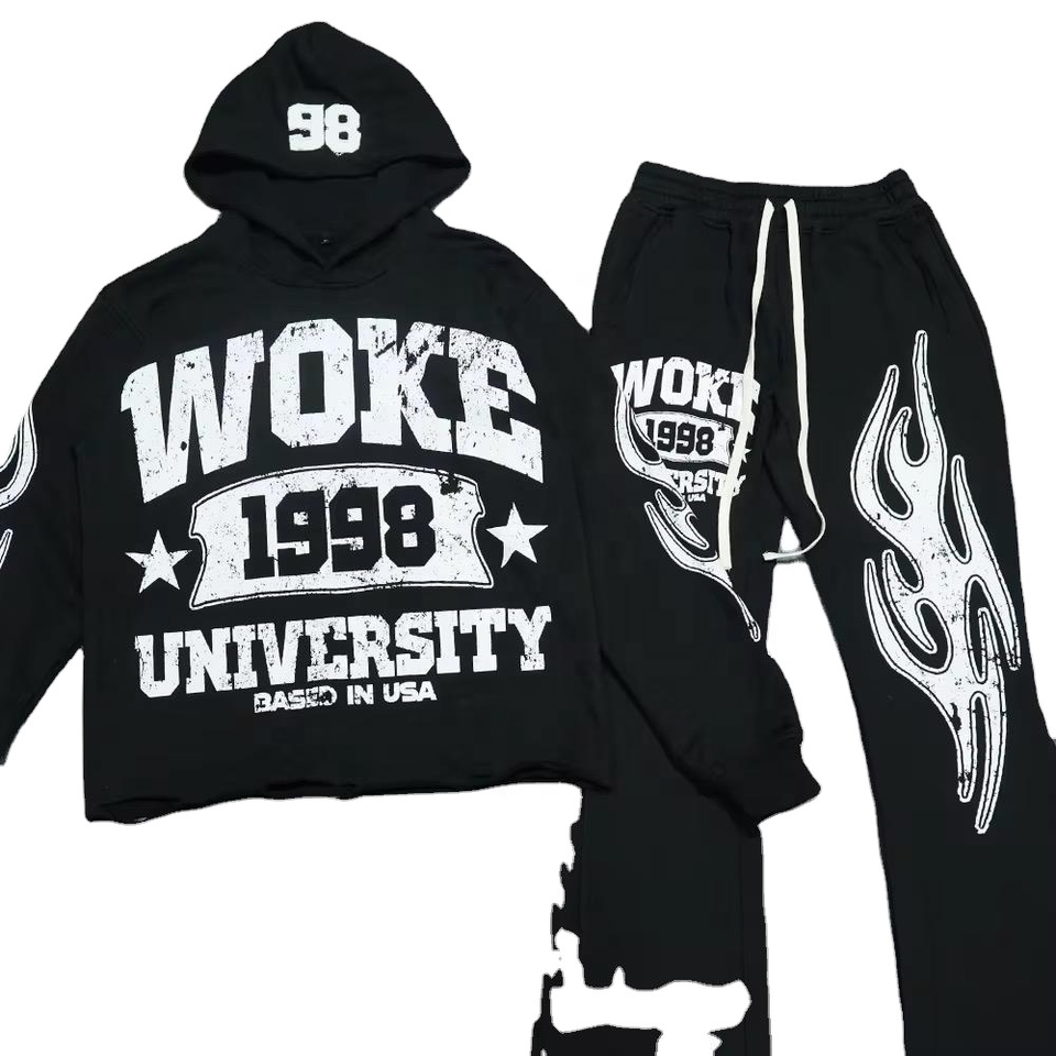 OEM Y2K 2-Piece Streetwear Casual Oversized Pullover Hoodie Set 100% Cotton White Embroidered Pocket Casual Raglan Hoodie White