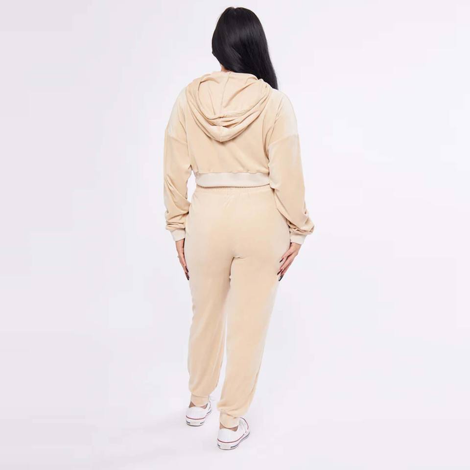 OEM Women's Winter 2-Piece Set Cotton Gym Crop Top Oversize Hoodie Your Own Logo Solid Pattern Button Waterproof Eco-Friendly