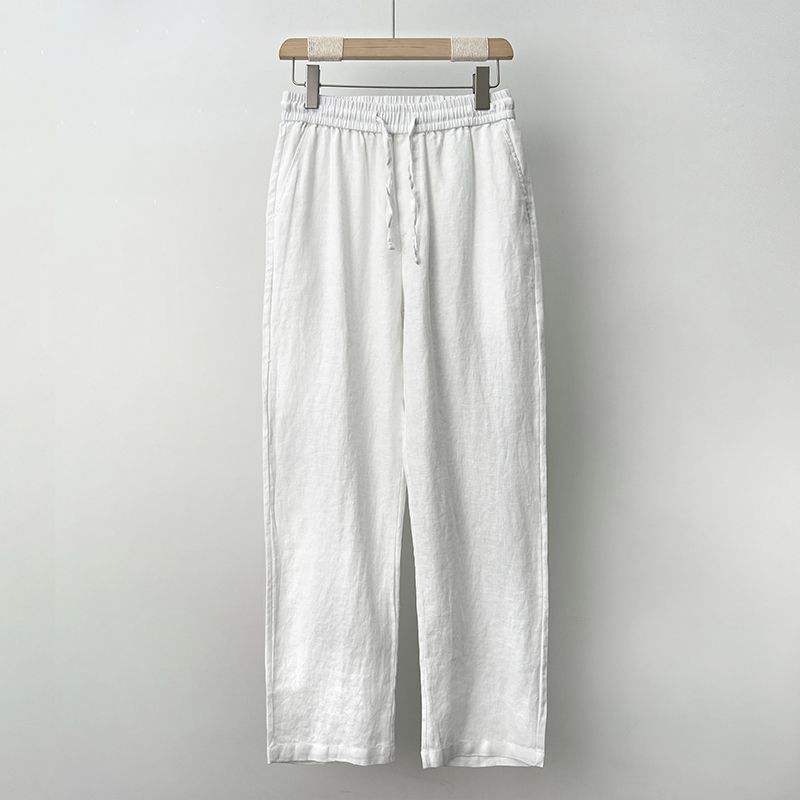 OEM custom logo embroidery printed design high-end pure linen summer trousers loose wide-leg straight casual trousers