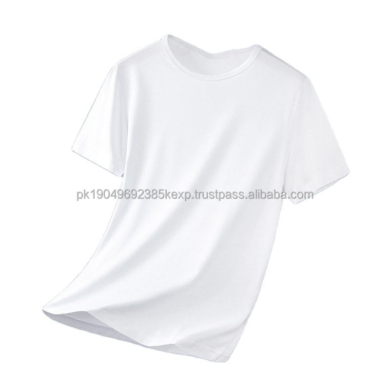 OEM custom logo embroidery printed design ice silk men's short-sleeved T-shirt summer solid color round neck high-end T-shirt