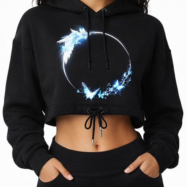 OEM custom women cropped hoodie featuring modern street style soft fabric comfortable fit ideal for everyday wear