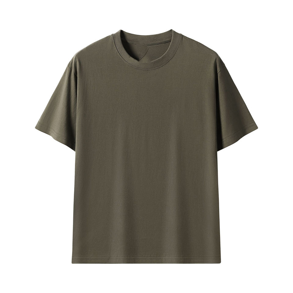 OEM customized logo embroidery design Summer 230g Heavyweight Pure Cotton Short-Sleeve T-Shirt for Men Crew Neck T-Shirt