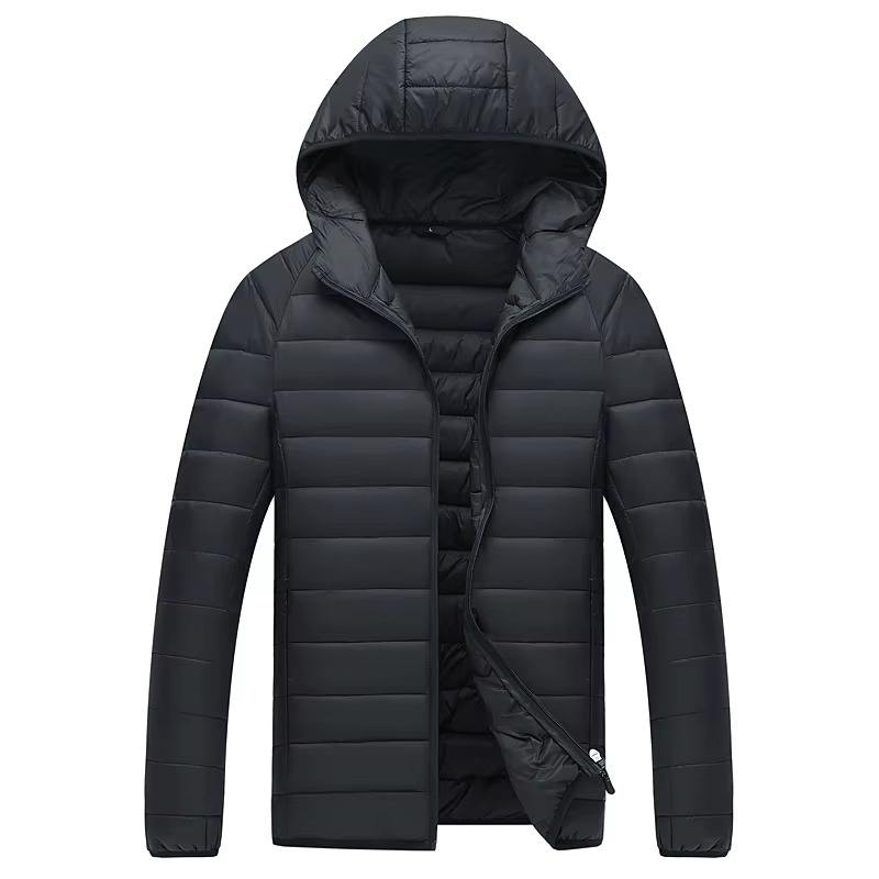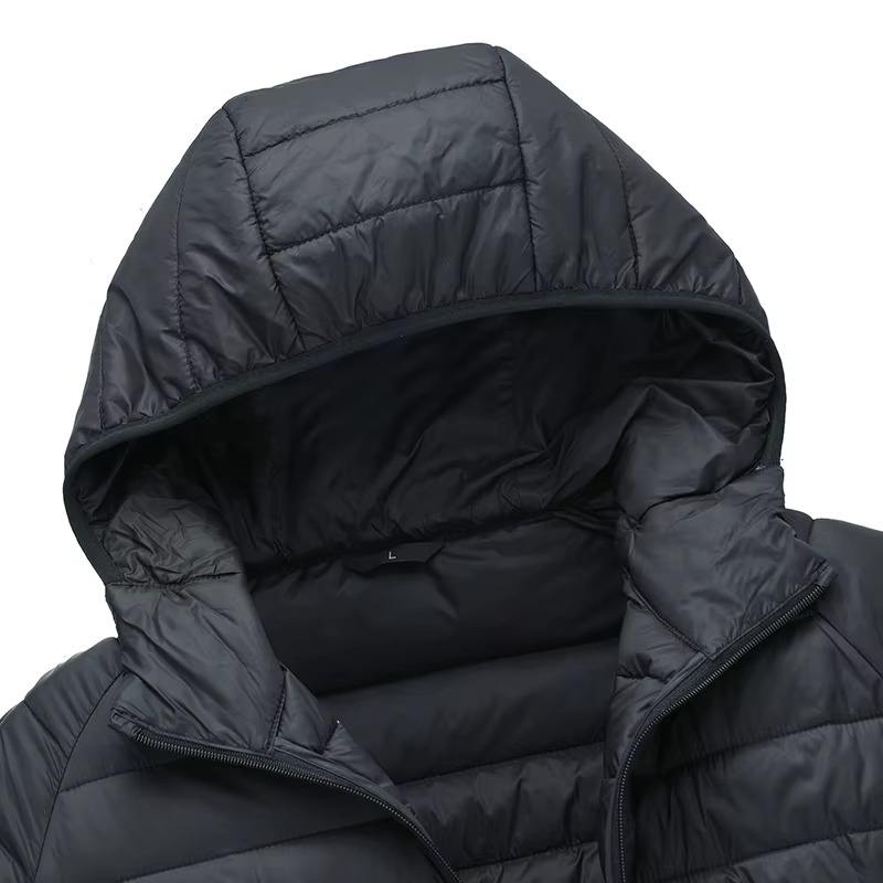 OEM high quality custom men's winter down coat with funnel neck waterproof hooded puffer design plus size and 90 percent down